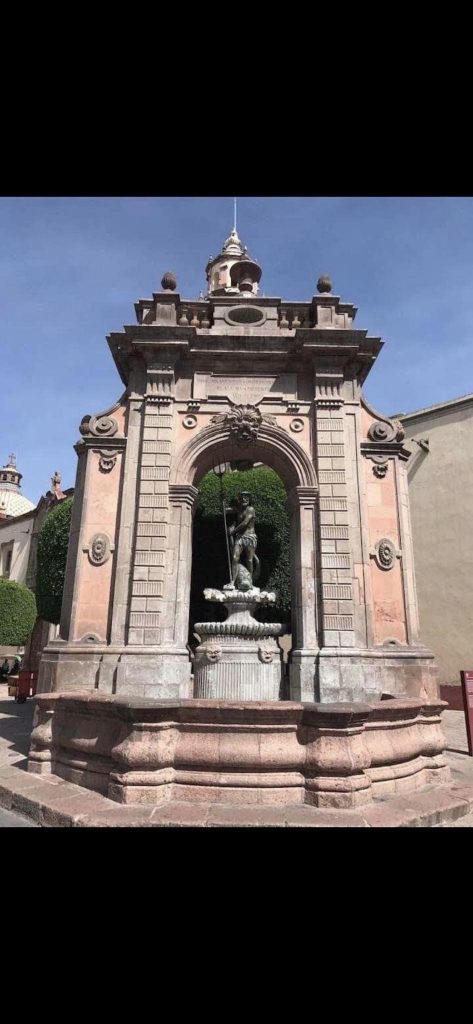 Son ya doscientos veinticinco años, en que terminada la fuente por el celayense José Eduardo Tresguerras, y la que se pensó dedicarla al poderoso Dios de los mares, al mitológico Poseidón, el que es representado mundialmente como un ser de gran corpulencia, musculoso, erguido y siempre de frente, con su tridente como instrumento de poder, siendo esta imagen de conocimiento universal. ¿Entonces qué sucedió en nuestra ciudad?, ¿Por qué un Neptuno retorcido de dolor, con la boca abierta y un rictus de agonía? Con un cuerpo sumamente delgado, a cuyo tórax se le pueden contar las costillas, notándosele su cabeza hacia atrás, el brazo izquierdo en posición de apoyo en algo inexistente, y el derecho con agregados en el hombro y recortes en el codo para que forzadamente sostenga el tridente.